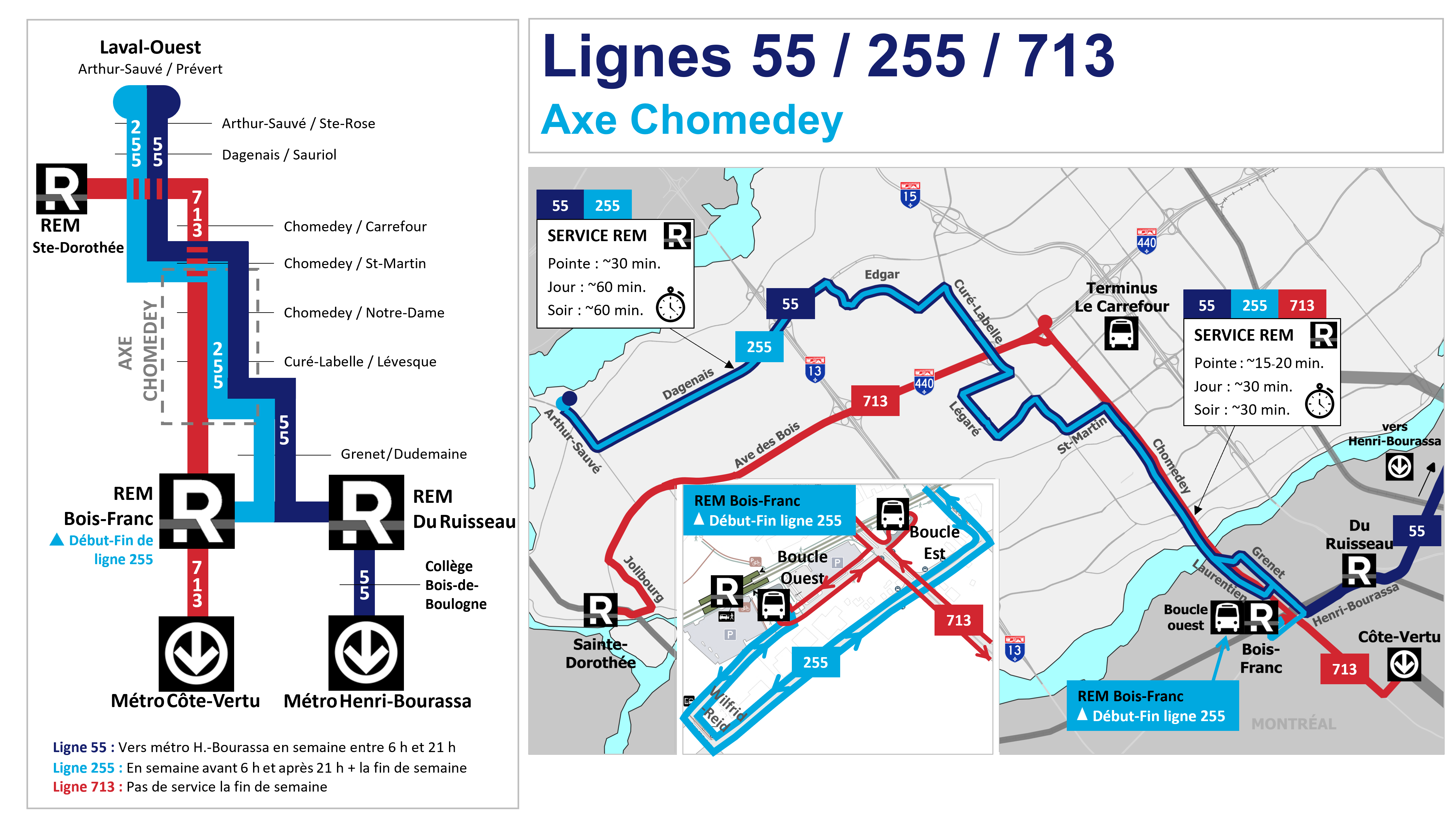 AXE CHOMEDEY – DESSERTE DU SECTEUR LAVAL-OUEST, DU TERMINUS LE CARREFOUR, DES MÉTROS HENRI-BOURASSA ET CÔTE-VERTU ET DES STATIONS REM BOIS-FRANC ET DU RUISSEAU
